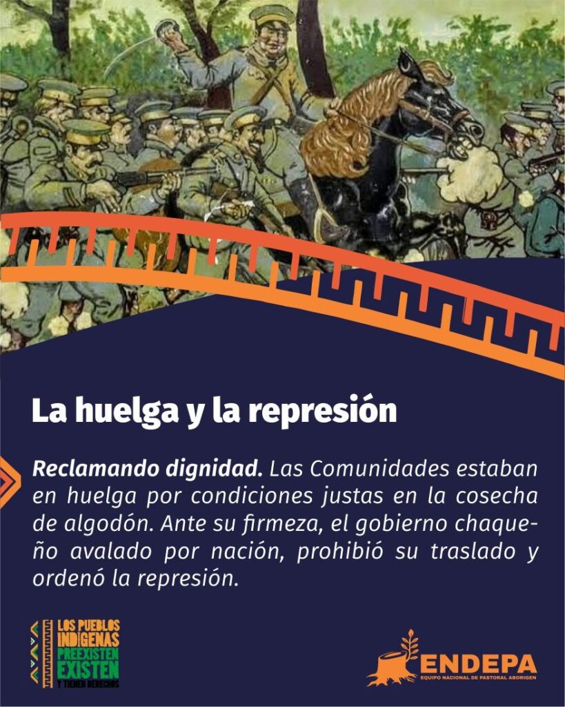 Las Comunidades se encontraban en huelga y reclamaban condiciones dignas, como así también, una paga justa por su trabajo en la cosecha de algodón. Denunciaban los abusos, el hambre, la servidumbre disfrazada de empleo. Planeaban trasladarse a los ingenios del norte, en busca de un futuro menos cruel.