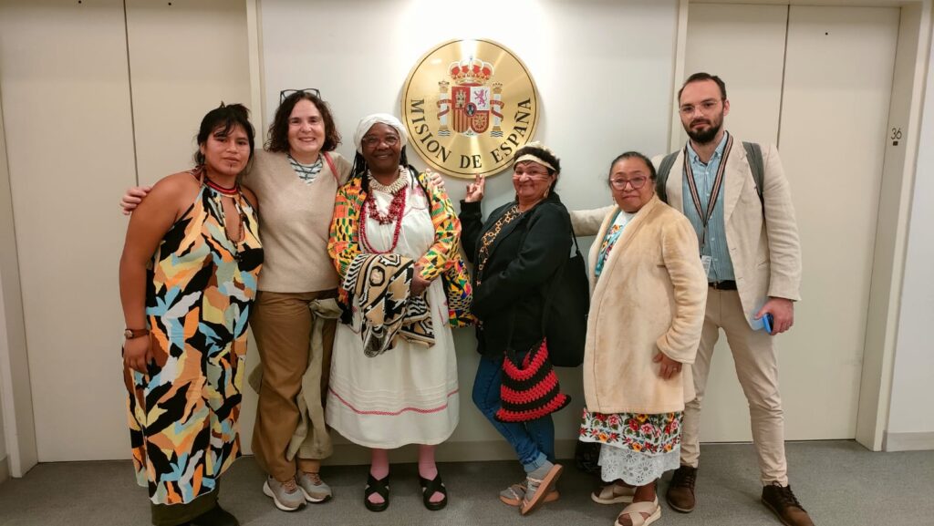 En representación de la Misión Permanente de España, el jueves 23 de abril, Ignacio García, ministro consejero, recibió a la comisión conformada por miembros de REPAM, REMAM y REGCHAG. Durante el encuentro, se denunció la explotación de sus territorios, la contaminación del agua y las múltiples formas de discriminación y criminalización que enfrentan las mujeres indígenas. Las representantes de las tres redes dejaron una serie de afirmaciones para considerar en los espacios de acción e incidencia: